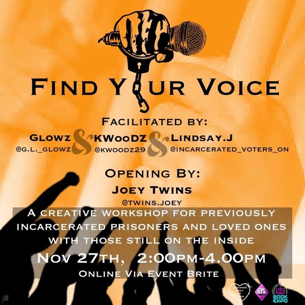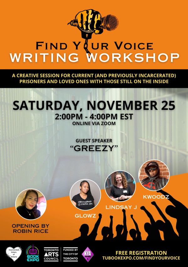 Find Your Voice guides participants through the creative writing process to support their individual healing practices and to compose a writing piece that can be included in their portfolios. Within this safe space, participants can connect and create in honour of their lived experiences with incarceration. Book club packages, one-on-one sessions, and guest speakers are available, in addition to our writing workshops.